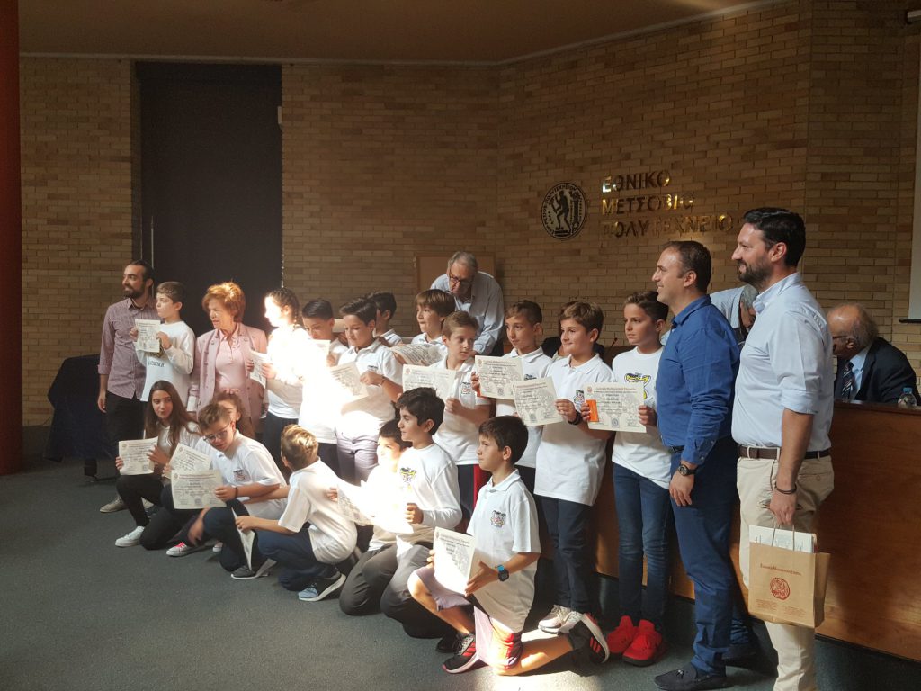 Από τη συμμετοχή του σχολείου μας στη βράβευση που οργάνωσε η Ελληνική Μαθηματική Εταιρεία στην Αίθουσα Τελετών του Εθνικού Μετσόβιου Πολυτεχνείου το περασμένο Σάββατο 19 Οκτωβρίου.Συγχαίρουμε και πάλι τους μαθητές, τους γονείς και τους δασκάλους για την τόσο σημαντική επιτυχία στον Πρώτο Μαθητικό Διαγωνισμό Ικανοτήτων «Πυθαγόρας» και ευχόμαστε πάντοτε τα παιδιά μας να προοδεύουν.