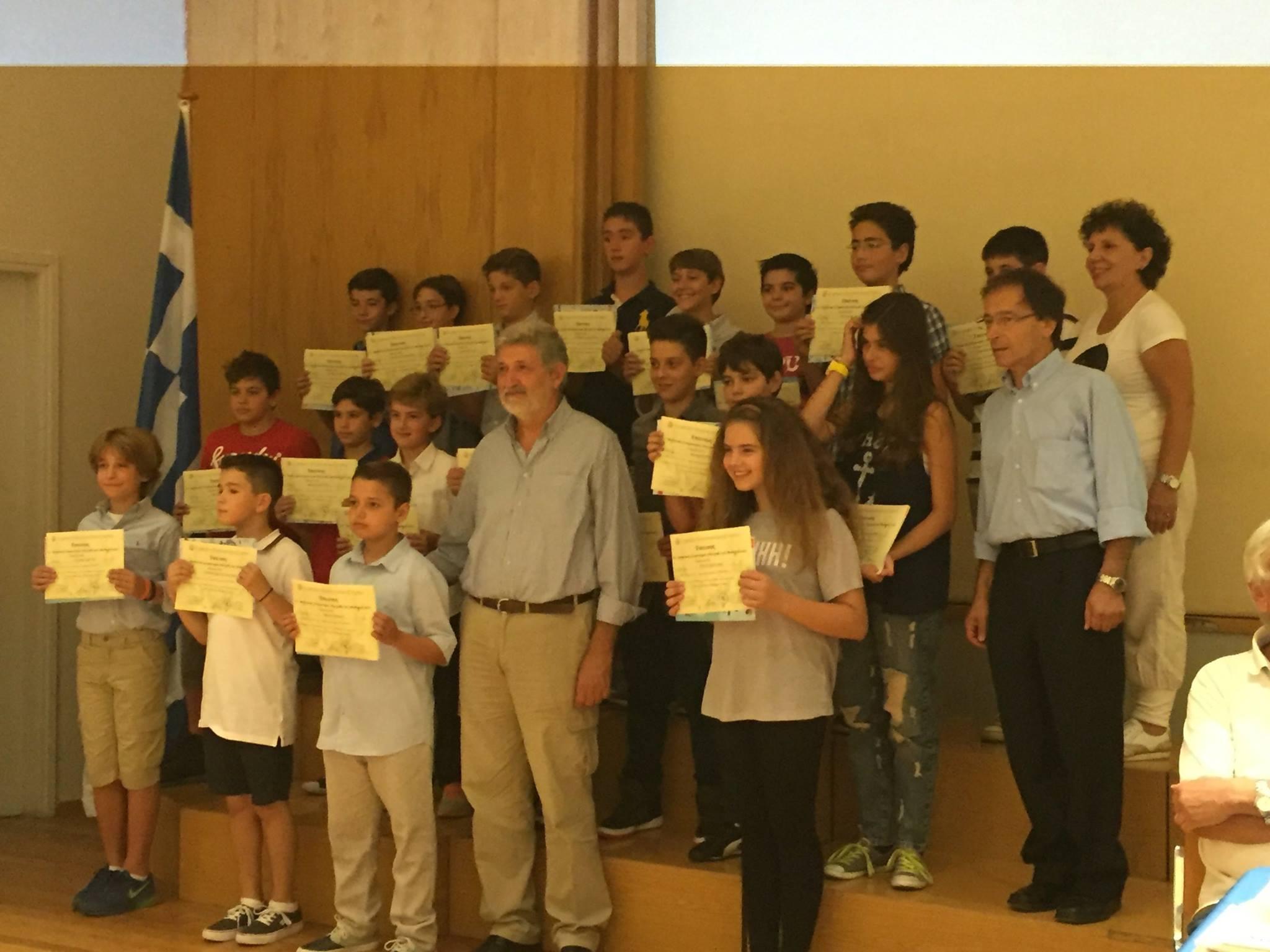 Υπερήφανοι και πανευτυχείς οι μαθητές της “Παιδαγωγικής ” ποζάρουν στο φακό κατα την τελετή βράβευσής τους για την επίδοσή τους στον πανελλήνιο διαγωνισμό της Ελληνικής Μαθηματικής Εταιρείας, Πανεπιστήμιο Πειραιά