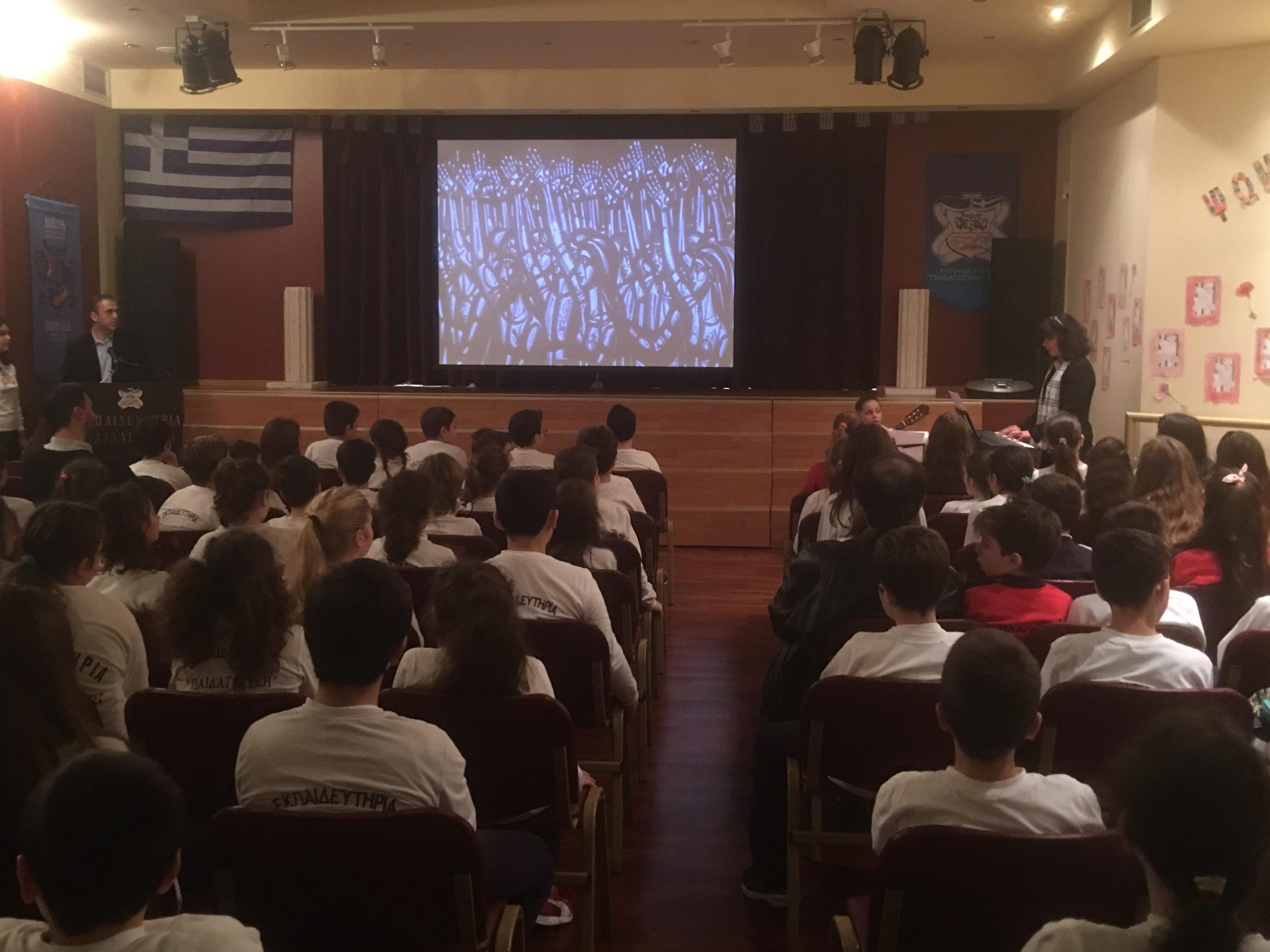 Μέσα σε μία υποβλητική ατμόσφαιρα την οποία δημιουργήσαμε στην αίθουσα εκδηλώσεων του σχολείου μας πραγματοποιήθηκε ο εορτασμός της επετείου του Πολυτεχνείου για τα παιδιά της “Παιδαγωγικής” ο οποίος περιελάμβανε πλούσιο φωτογραφικό υλικό, ηχητικά ντοκουμέντα, σκετσ, τραγούδια και απαγγελίες.
