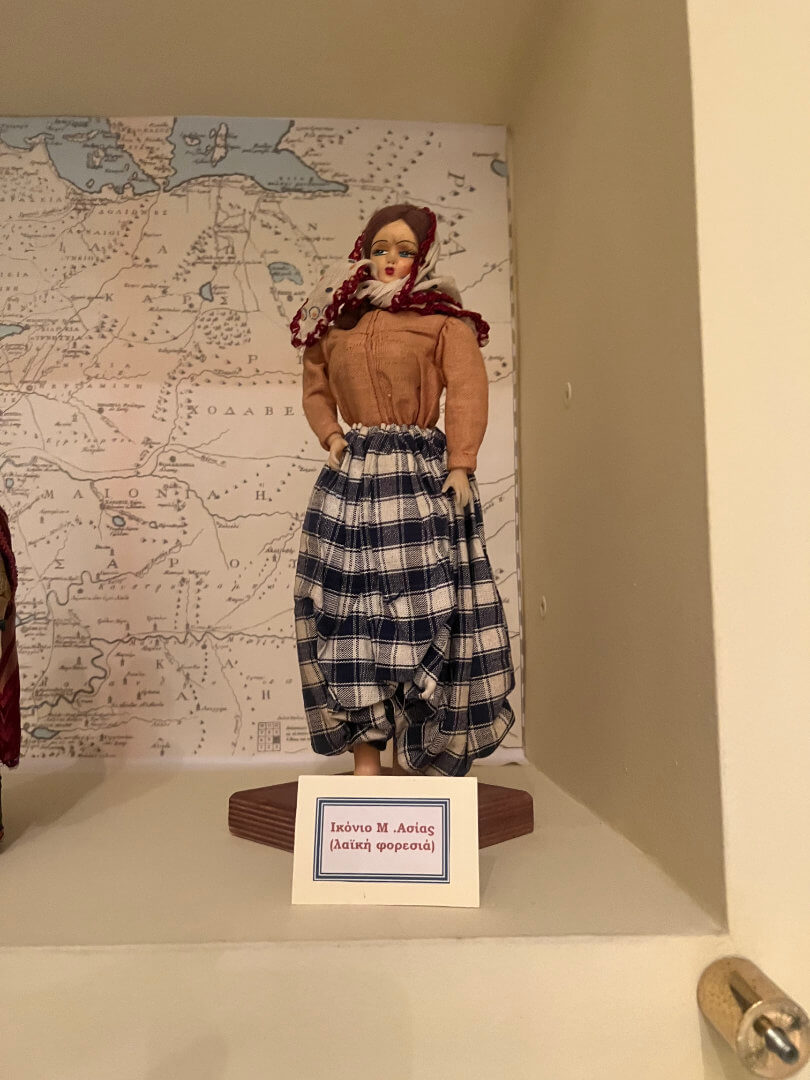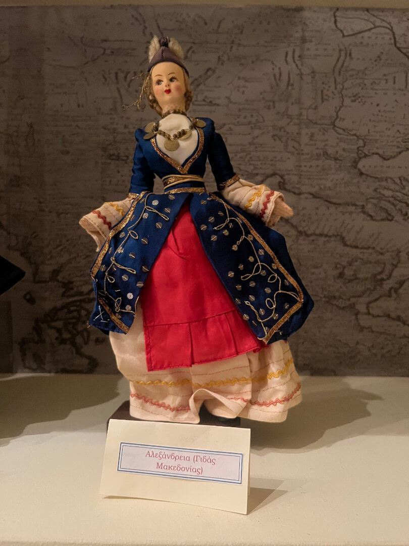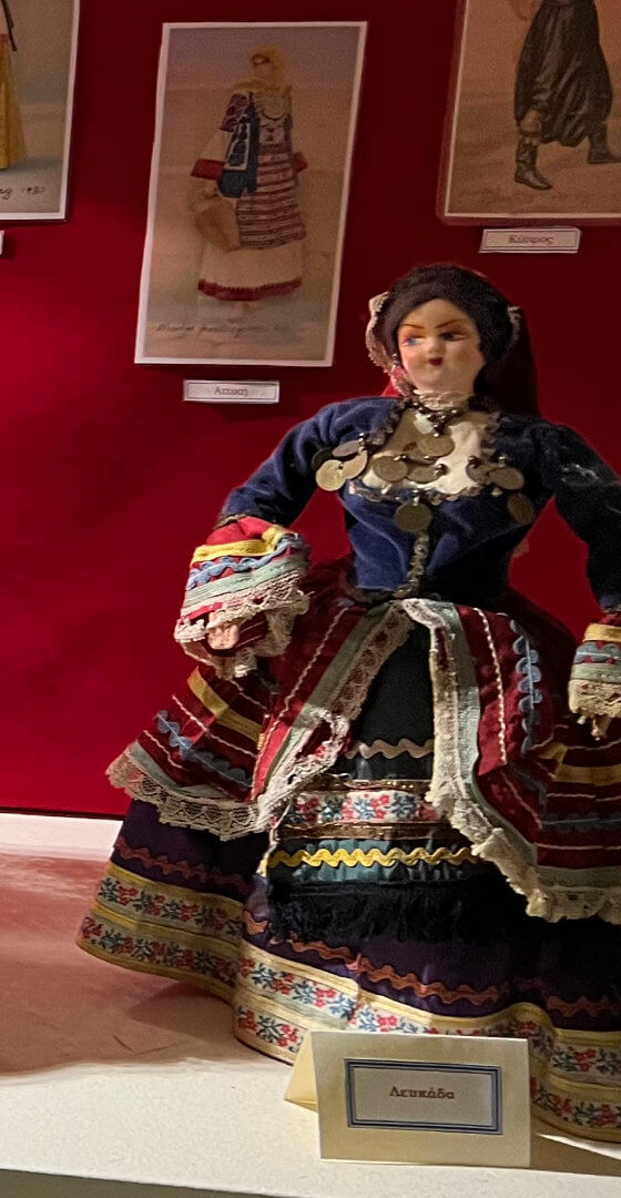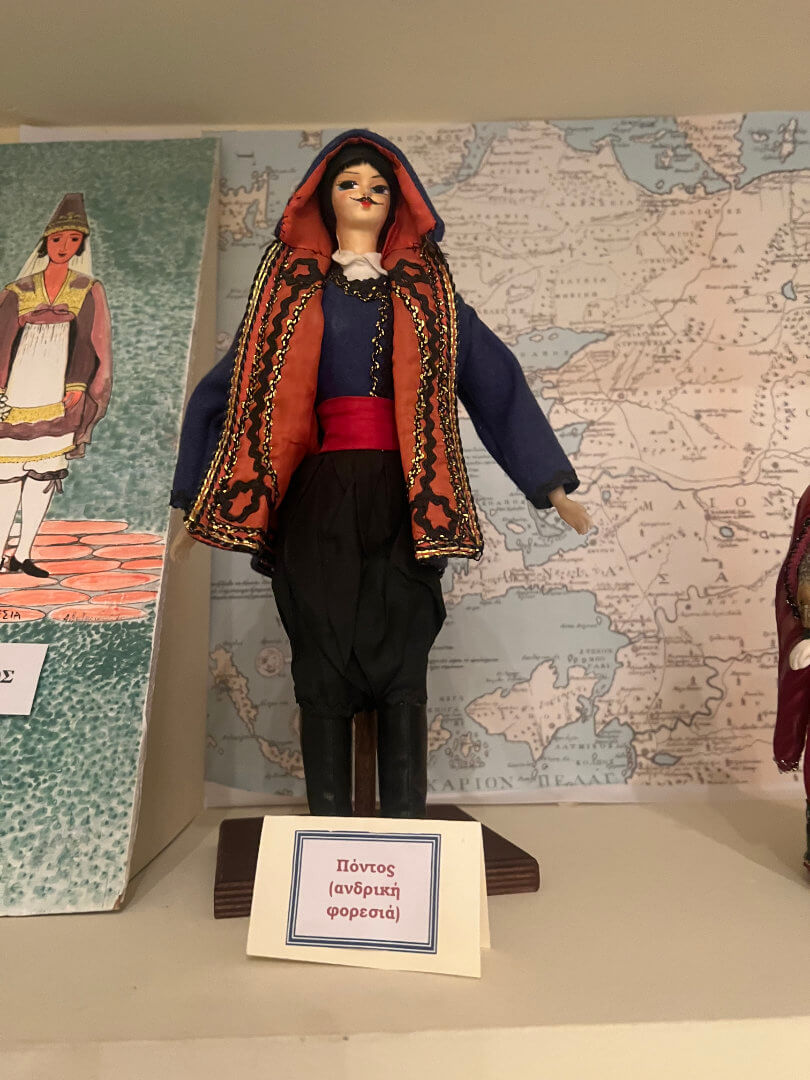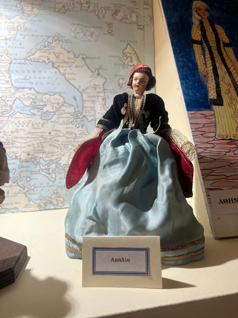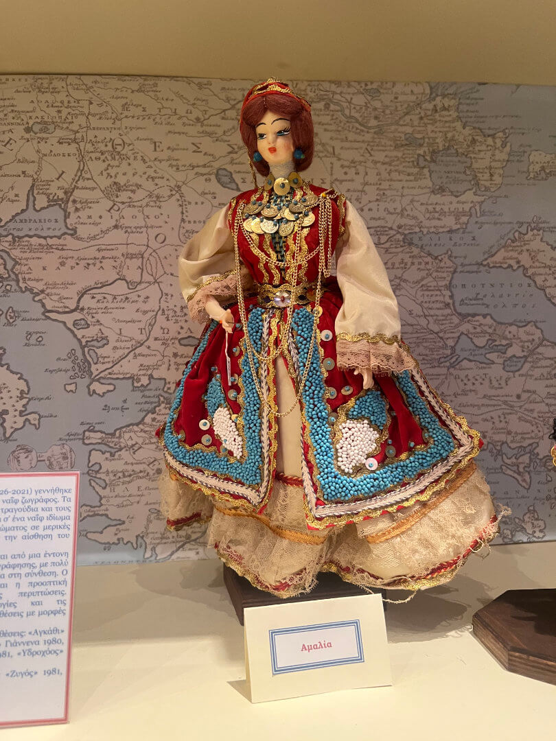 Επιστέγασμα αυτής της συνολικής προσπάθειας είναι η φιλοξενία στον Μουσειακό Χώρο των εκπαιδευτηρίων μας μίας πολύ ενδιαφέρουσας συλλογής με κούκλες με παραδοσιακές ελληνικές φορεσιές η οποία οργανώθηκε με γνώση, ιστορική τεκμηρίωση και πολύ μεράκι, χάρις στις φροντίδες της υπεύθυνης του Μουσείου Παιχνιδιών Ερμιόνης, Μαρίας Τράκη η οποία μας παραχώρησε για τις ανάγκες της μουσειακής έκθεσης ένα σημαντικό μέρος της συλλογής με κούκλες του Μουσείου Παιχνιδιών του Ερμιονικού Συνδέσμου. Ευχαριστούμε επίσης ιδιαίτερα την συλλέκτρια, Νταίζυ Σκαραμαγκά για την παραχώρηση μέρους της συλλογής της, όπως και την κυρία Αγγελική Λαλούση για τον δανεισμό της κούκλας με την παραδοσιακή φορεσιά της Σαλαμίνας.