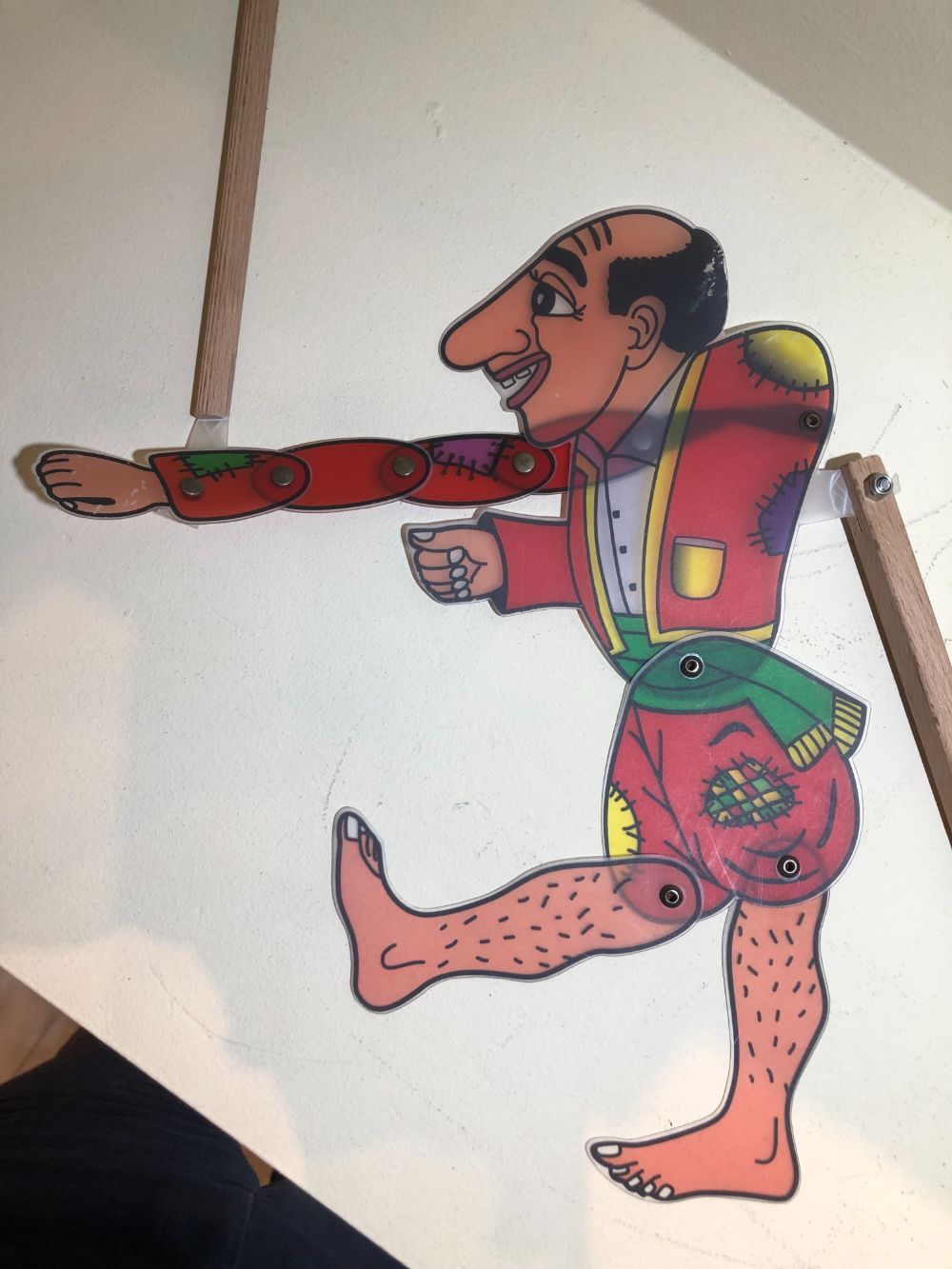 Δ) Το ελληνικό Θέατρο Σκιών του Καραγκιόζη με τις ιδιαίτερες φιγούρες, αλλά και παράγωγα της επιτυχίας του είδους αυτού, όπως είναι τα περιοδικά για παιδιά με ιστορίες του δημοφιλή ήρωα.