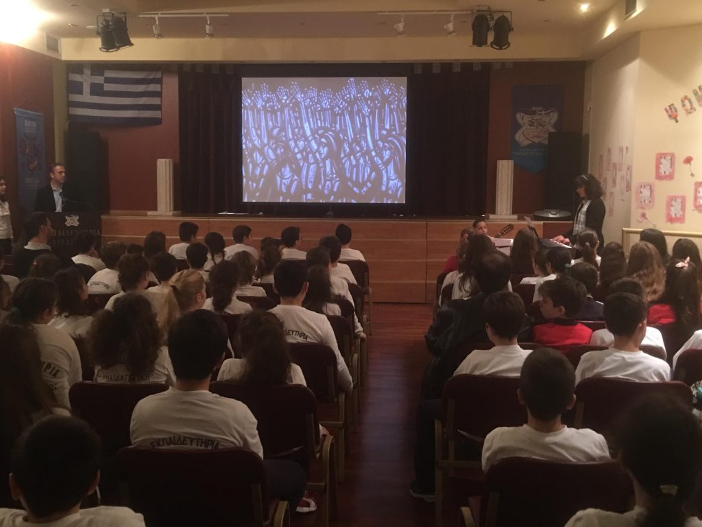 Μέσα σε μία υποβλητική ατμόσφαιρα την οποία δημιουργήσαμε στην αίθουσα εκδηλώσεων του σχολείου μας πραγματοποιήθηκε ο εορτασμός της επετείου του Πολυτεχνείου για τα παιδιά της “Παιδαγωγικής” ο οποίος περιελάμβανε πλούσιο φωτογραφικό υλικό, ηχητικά ντοκουμέντα, σκετσ, τραγούδια και απαγγελίες.