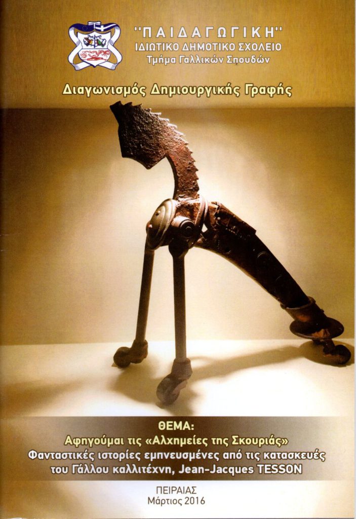 Το σχολικό έτος 2015-2016 φιλοξενήθηκε στο μουσειακό χώρο του Δημοτικού Σχολείου «ΠΑΙΔΑΓΩΓΙΚΗ», έκθεση έργων γλυπτικής του Γάλλου καλλιτέχνη, Jean-Jacques Tesson με θέμα: «Αλχημείες της σκουριάς». Ο Jean-Jacques Tesson κατάγεται από τη Βουργουδία της Γαλλίας και μένει μόνιμα εδώ και 25 χρόνια στην Αίγινα. Είναι σκηνοθέτης και διευθυντής της θεατρικής ομάδας θεάτρου δρόμου (ΠΑΙΖΩ-ΔΡΟΜΟΣ). Ασχολείται επίσης με «κατασκευές» με υλικά από σκουριασμένα σίδερα, ρουλεμάν, γρανάζια, βίδες, παλιά εργαλεία κ.ά., προσφέροντάς τους μία «δεύτερη ευκαιρία», μια καινούργια ζωή. Σε μερικές κατασκευές, «σκουριά και αρμύρα» συμβαδίζουν κι αυτό διότι προέρχονται από την Αίγινα, το νησί που ζει μόνιμα ο Jean-Jacques Tesson. Οι ευφάνταστες κατασκευές του από διαμελισμένες καρίνες και τσακισμένες βάρκες αποτελούν τροφή για την αναλυτικοσυνθετική σκέψη παιδιών και μεγάλων παραπέμποντας σε θρύλους, μύθους ή σε γνωστά έργα Τέχνης ή απλώς σε διάφορα παιχνιδίσματα της φαντασίας του καλλιτέχνη.