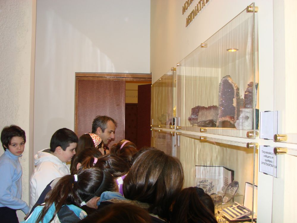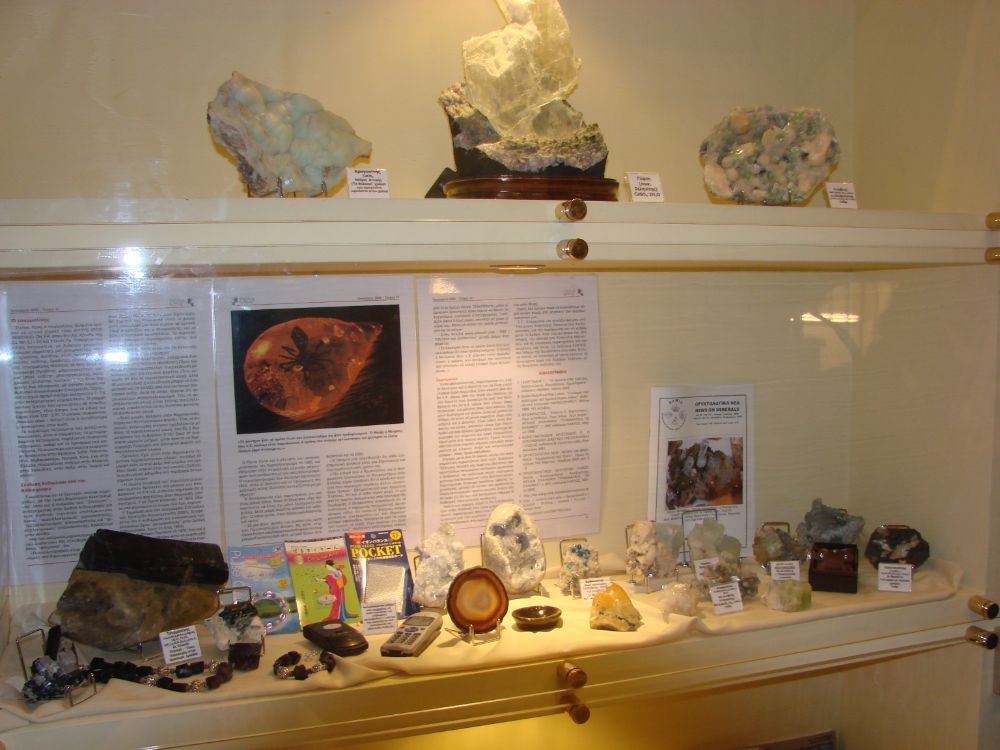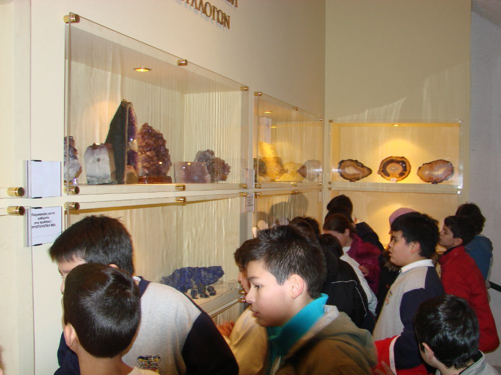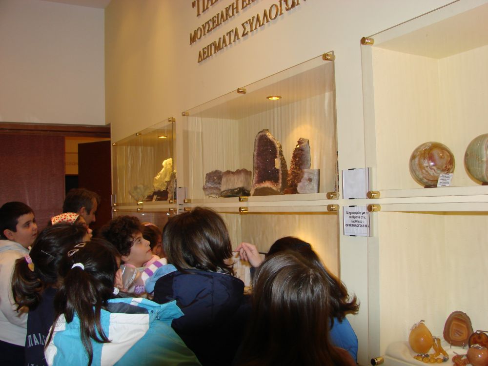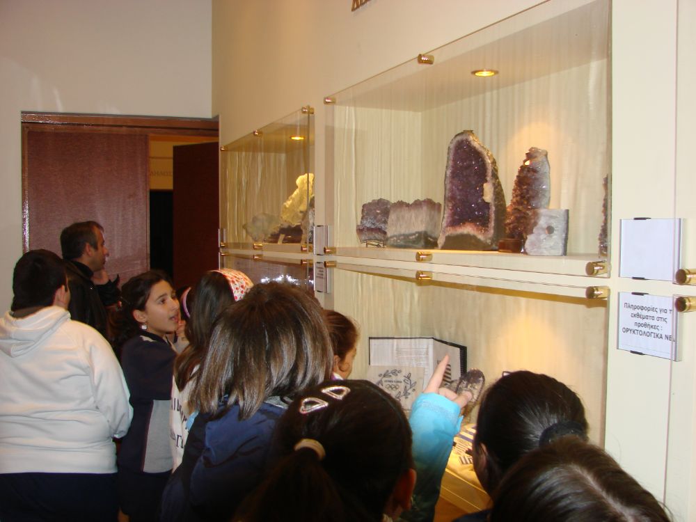 Τα «Ορυκτά στη ζωή μας» ήταν το θέμα της έκθεσης η οποία φιλοξενήθηκε στον Μουσειακό χώρο του σχολείου και βασίστηκε σε ένα μέρος της συλλογής των αδελφών Δημήτριου και Ευαγγελίας Μηνατίδη. Επίσης, ο Δημήτριος Μηνατίδης με την εξειδίκευση του διδάκτορος γεωλογίας μας παρείχε την επιστημονική καθοδήγηση προκειμένου να γίνουν σωστά όλα τα βήματα της προσέγγισης του θέματος. Και από αυτή τη θέση ευχαριστούμε ιδιαίτερα την κυρία και τον κύριο Μηνατίδη διότι διέθεσαν τον χρόνο, τις γνώσεις, την ενέργεια, το μεράκι τους και βεβαίως ένα μέρος της υπέροχης συλλογής τους, το οποίο όχι μόνο εκτέθηκε στον Μουσειακό Χώρο, αλλά και αποτέλεσε την αφορμή για να δουλέψουν διεπιστημονικά σε πολλά επίπεδα οι μαθητές του Δημοτικού και του Νηπιαγωγείου. Έτσι μέσα από όλο αυτό το περιπετειώδες ταξίδι της γνώσης τα παιδιά ήρθαν σε επαφή με τα ορυκτά και κατανόησαν όχι μόνο την προέλευσή τους, αλλά και τη χρησιμότητά τους στην καθημερινή ζωή του ανθρώπου. Αυτός εξάλλου ήταν και ο αρχικός μας στόχος.